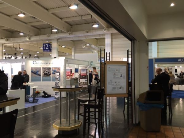 Zwei Produkte sind uns beim Rundgang aufgefallen: Beton Hersteller Godelmann, zeigt seinen reinigenden Betonstein, der Feinstaub und Öle säubert und trotzdem Wasser durchlässt.