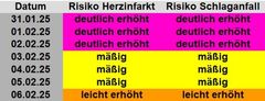 Die Schlaganfall- und Herzinfarktrisiken bis zum 26.05.2025