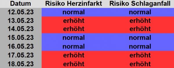 Die Schlaganfall- und Herzinfarktrisiken bis zum 18.05.2023