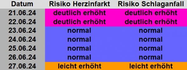 Die Schlaganfall- und Herzinfarktrisiken bis zum 27.06.2023.