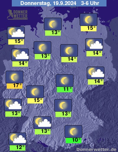 Die Temperaturen gehen in den frühen Morgenstunden zurück auf Werte um 17 bis 10 Grad.