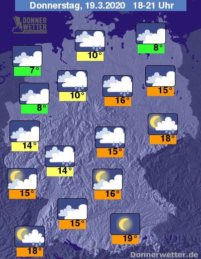 Heute Abend ist der Himmel vom Norden bis in die breite Landesmitte meist bedeckt und es fällt hier und da auch etwas Regen. Im Süden ist es hingegen meist locker bewölkt oder sternenklar und nur ganz vereinzelt bringen dichtere Wolken hier seltene Schauer. Die Temperatur liegt bei 7 Grad in Cuxhaven und bis 19 Grad in München.