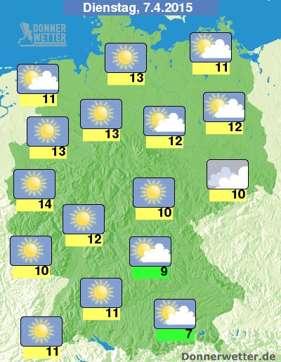 Heute halten sich im Osten und Südosten häufig dichte Wolken, teils ist es aber auch hier aufgelockert bewölkt, dazu bleibt es trocken. Im großen Rest des Landes ist es verbreitet heiter bis sonnig und trocken. Vor allem im Küstenumfeld können aber auch mal dichtere Wolken durchziehen. Die Temperatur steigt auf 7 Grad in Oberbayern und bis 14 Grad in der Kölner Bucht.