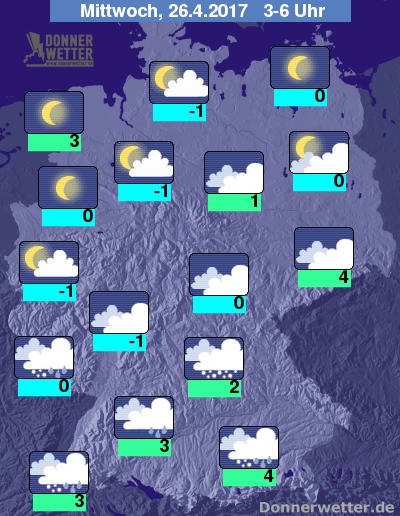 In der folgenden Nacht klart der Himmel über dem Norden und Westen Deutschlands immer weiter auf, dazu bleibt es hier trocken. Meist dichte Wolken halten sich südlich einer Linie von Rheinlandpfalz bis nach Berlin. Zeitweise Regen, Schneeregen oder Schnee fällt allerdings nur südlich des Mains. Dabei ist stellenweise auch mit Straßenglätte zu rechnen! Die Temperatur sinkt auf 4 Grad in Dresden und bis etwa -1 Grad in der Norddeutschen Tiefebene.