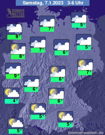 Am Samstag ist es im Norden zumeist stark, im übrigen Bundesgebiet teilweise stark, teils auch gering bewölkt. An der See sind einige Tropfen möglich, sonst bleibt es trocken bei 8 Grad in Rostock und bis 12 Grad in Freiburg. An der Nordsee weht ein teils stürmischer Wind.