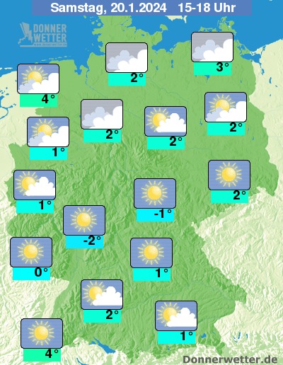 Die Temperaturen erreichen Höchstwerte um -2 Grad im Pfälzer Wald und 4 Grad auf den ostfriesischen Inseln.