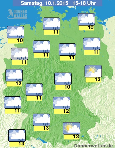 Heute Nachmittag bleiben die Wolken weitgehend dicht, ganz vereinzelt kann es im Süden auch mal auflockern. Es fällt zeitweise, teils kräftiger Regen. Die Temperaturen steigen auf 10 Grad an der Ostsee und bis 13 Grad in Schwaben. Es weht verbreitet starker bis stürmischer Wind, dabei sind in Sturmböen und vereinzelt auch schwere Sturmböen möglich. Auf den Hochlagen der Mittelgebirge sowie an den Küsten sind orkanartige Böen und vereinzelt auch Orkanböen möglich.
