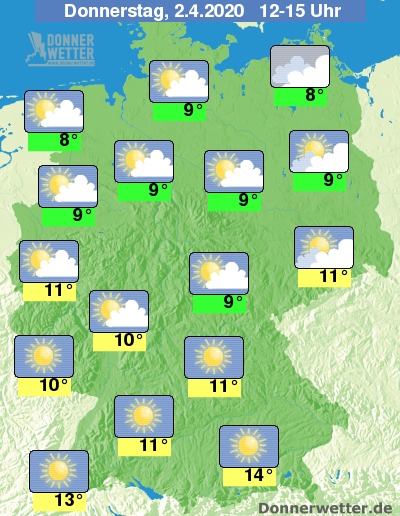 Die Temperaturen bewegen sich zwischen 8 und 14 Grad, am kühlsten bleibt es dabei ganz im Norden, am mildesten wird es ganz im Süden unseres Landes.