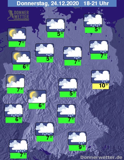 Während der zweiten Nachthälfte treten regional Regen- oder Schneeregen-, im Bergland auch Schneeschauer auf. Sonst leuchten neben durchziehenden Wolkenfeldern auch zeitweise Halbmond und Sterne.