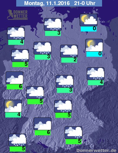 Heute Abend ist es im Nordosten noch meist locker oder aufgelockert bewölkt und dazu weitgehend trocken, sonst ziehen auch im Norden, wie bereits im übrigen Bundesgebiet dichte Wolken auf, die im weiteren Verlauf für Regen, teils auch für Schneeregen sorgen, stellenweise besteht Glättegefahr! Im Süden und Westen fällt nur noch gebietsweise etwas Regen, zumeist bleibt es hier trocken, jedoch auch meist stark bewölkt. Die Abendtemperatur liegt bei 6 Grad in Aachen und um 0 Grad in Vorpommern. Über der Südhälfte weht ein teils starker Wind.