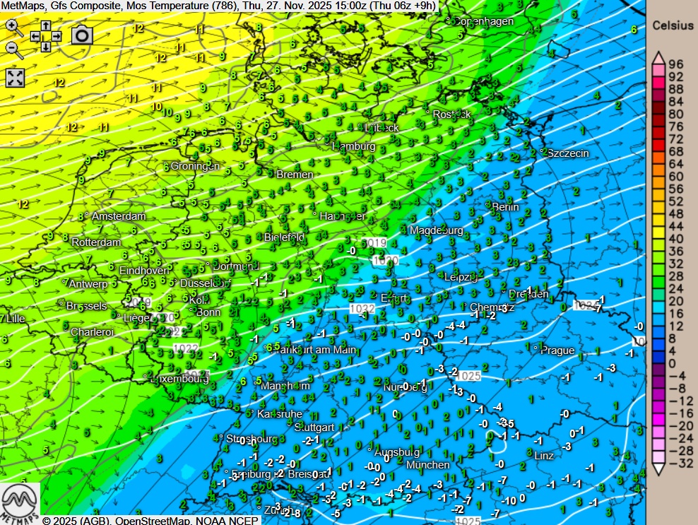 Die Temperaturen erreichen Höchstwerte um um 1 bis 8 Grad.