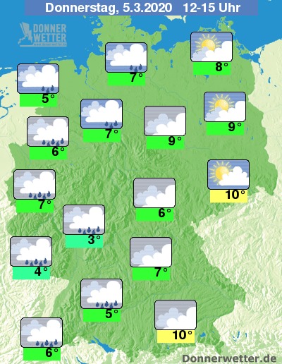 Die Temperaturen bewegen sich zwischen 3 Grad unter den dichten Regenwolken im Rhein-Main-Gebiet und 10 Grad im freundlichen Sachsen.