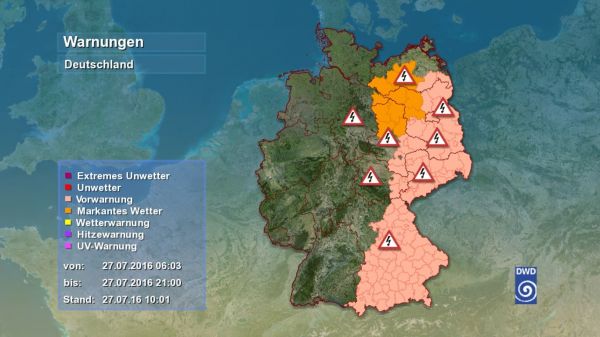 Auch für viele weitere Regionen zwischen Ostsee und Alpen gelten Vorwarnungen des DWD vor weiteren schweren Gewittern. Diese werden vor allem in den Nachmittagsstunden erwartet.