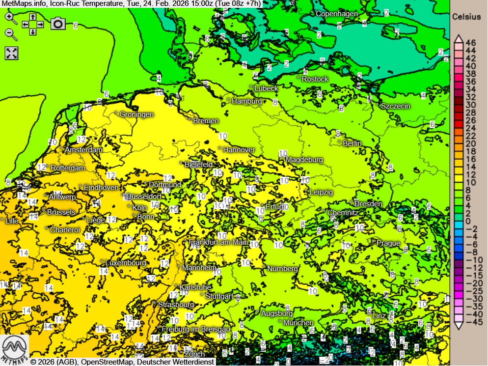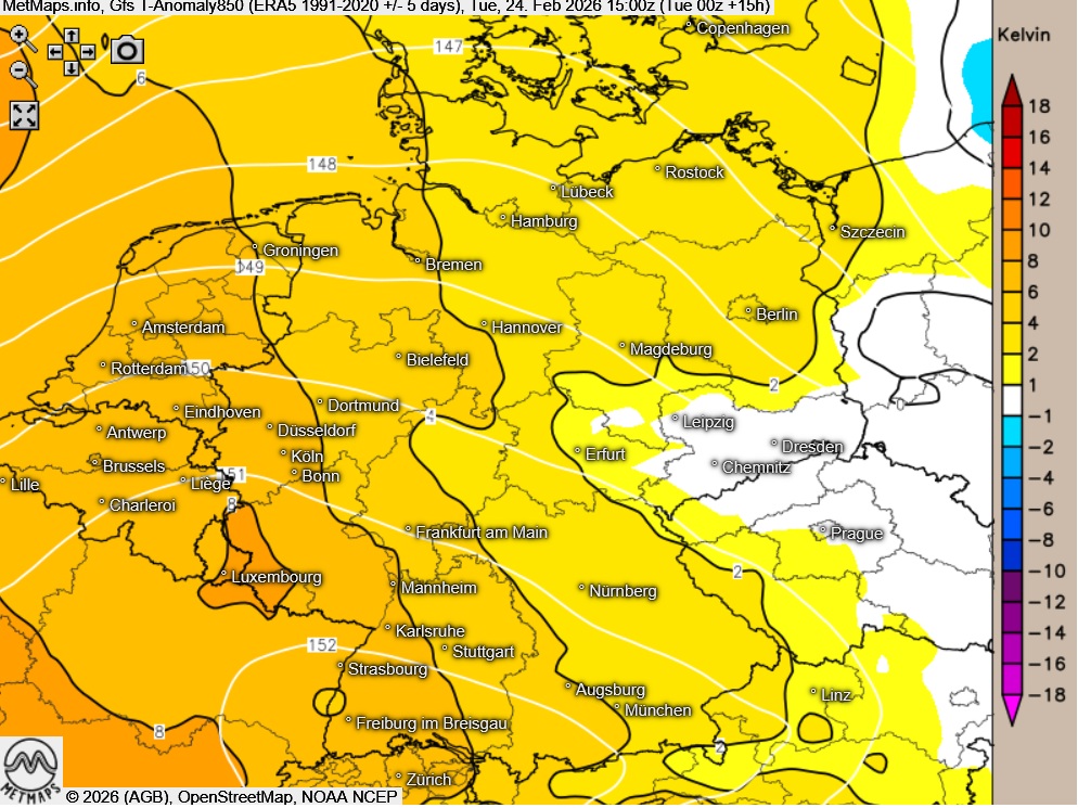 Lokal bereits Temperaturen um 16 Grad am Nachmittag.