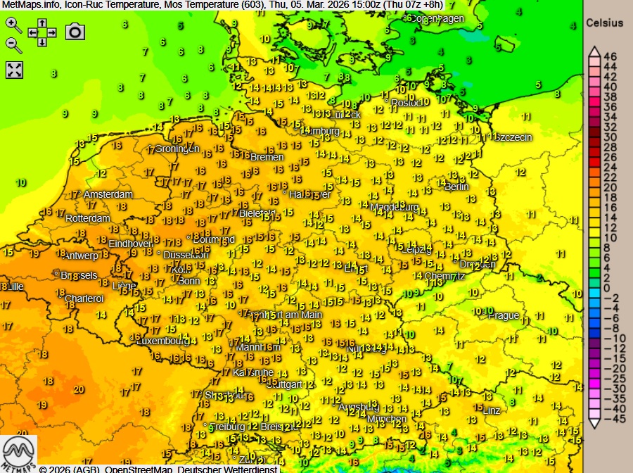 Sehr mild bei Höchstwerten um 10 bis 19 Grad.