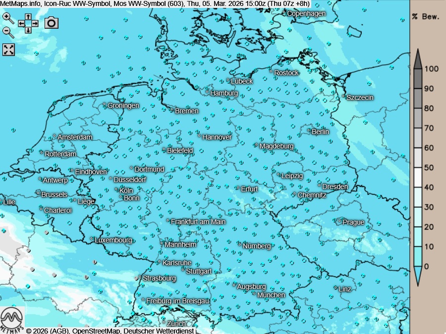 Am Donnerstagnachmittag scheint die Sonne über weiten Landesteilen von einem meist wolkenlosen Himmel - zeit- und gebietsweise ist eine leichte Eintrübung durch Saharastaub möglich. Es bleibt trocken.
