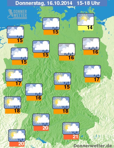 Am Donnerstag halten sich besonders in der Nordhälfte des Landes überwiegend dichte Wolken und es fällt zeitweise Regen, aber auch sonst ziehen meist viele, häufig auch dichte Wolken durch und es können sich einzelne Schauer und Gewitter entwickeln, gebietsweise bleibt es aber auch trocken. Die Temperatur steigt auf etwa 13 Grad in der Norddeutschen Tiefebene und auf etwa 20 Grad im Raum München.
