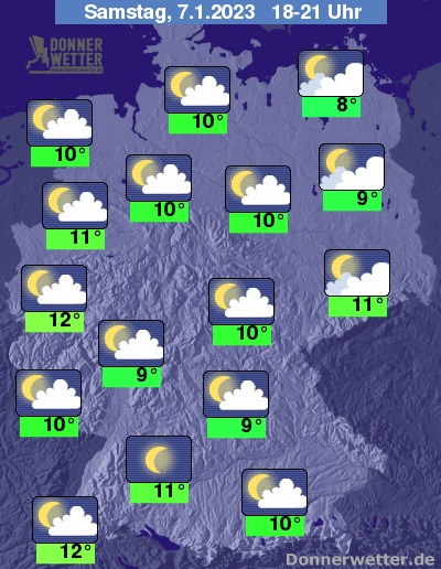 Heute Abend zeigt sich der Himmel auch über dem Norden oft locker bis aufgelockert, sonst generell überwiegend locker bewölkt. Bei Werten von 8 Grad in Neubrandenburg und 12 Grad in Köln bleibt es landesweit trocken. An der Nordsee weht ein zunehmend stürmischer Wind.