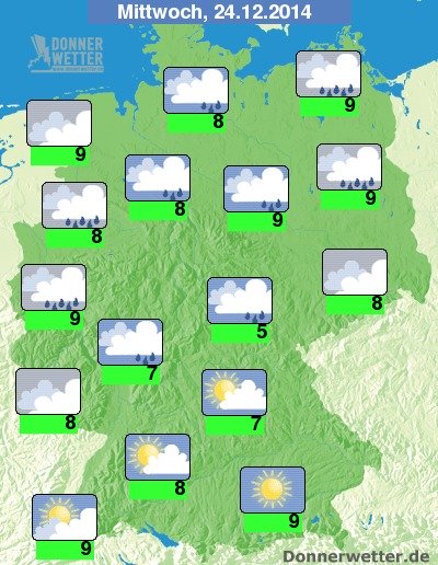 Am Mittwoch bleiben die Wolken wiederum meist dicht und in der Nordhälfte der Republik fällt dazu auch immer wieder Regen, gegen Abend lockert es im Küstenumfeld jedoch auf und nachfolgend bleibt es hier meist trocken. Deutlich freundlicher mit zeitweiligem Sonnenschein zeigt sich der Mittwoch südlich des Mains, hier bleibt es bis in den Abend hinein auch trocken. Es weht oft frischer, an der See und in Böen starker Wind. An der See sind auch stürmische Böen möglich. Die Temperatur steigt auf 5 Grad am Thüringer Wald und bis 9 Grad in der Kölner Bucht.