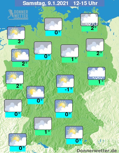 Heute Nachmittag zeigt sich das Wetter häufig neblig-trüb oder stark, hier und da auch mal etwas aufgelockert bewölkt. Im Südosten, Osten und Nordosten fällt dabei gebietsweise Schnee, zum Teil auch Schneeregen, dagegen bleibt es im übrigen Land weitgehend trocken. Die Temperatur steigt auf -1 Grad im Thüringer Becken und bis 3 Grad an der Nordsee.