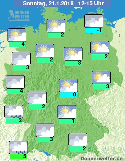 Heute Abend fällt südwestlich einer Linie Köln-München zeitweise Regen, Schneeregen oder Schee. Nordöstlich dieser Linie ist es ebenfalls bedeckt, jedoch trocken. Oft locker bis aufgelockert bewölkt und dazu trocken zeigen sich der Norden und der Osten der Republik. Die Temperatur liegt bei 0 bis 5 Grad.