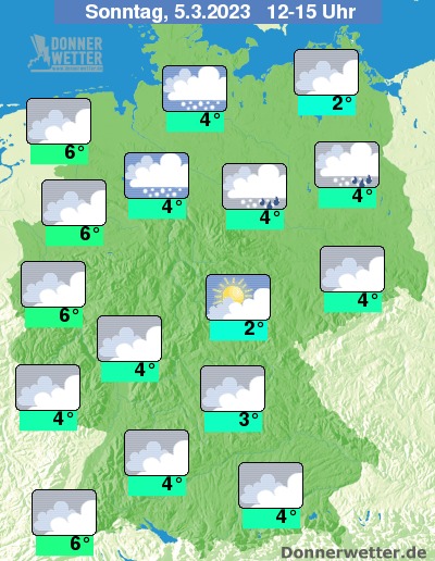 Heute Abend ist es weiterhin größtenteils bedeckt, an der Nordsee und über Sachsen fällt gebietsweise Schnee, Schneeregen oder Regen. Im übrigen Land bleibt es dagegen weitgehend trocken bei Werten von 2 Grad in Stralsund und bis 7 Grad in Freiburg.