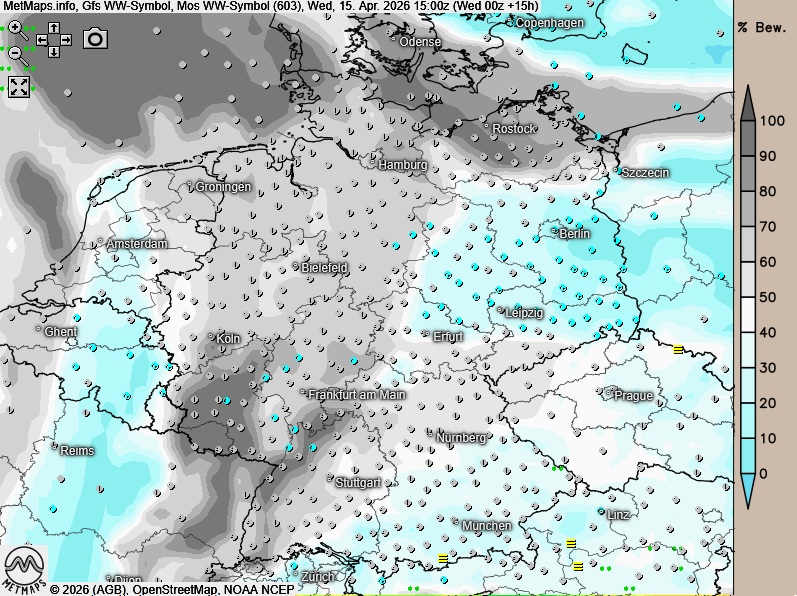 | Am Dienstag wolkig, dabei zeit- und gebietsweise vor allem im Osten und Südosten Regen oder Schauer. Im Westen und Nordwesten immer wieder freundliche Phasen und meist trocken. Höchstwerte um 9 bis 18 Grad. |