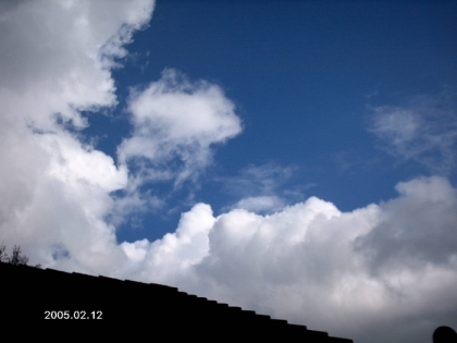 Zu sehen sind Cumuluswolken. Es sieht in der Kameraeinstellung so aus, als würden sie über das Haus kriechen. Wenn sie in die Höhe wachsen, können sich rasch Schauer und Gewitter bilden.