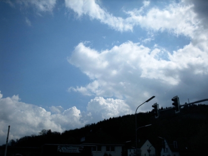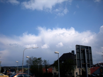 Beschreibung: Das Bild zeigt stark aufquellende Cumuluswolken, einige haben schon das Stadium der Cumulus congestus oder sogar das Vereisungsstadium erreicht.