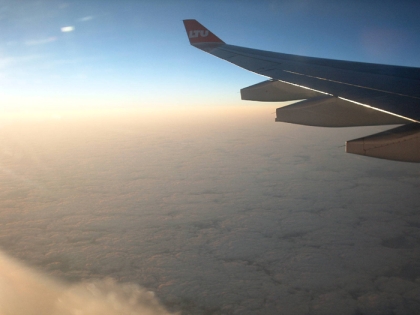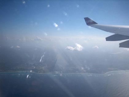 "Das Bild zeigt Cumuluswolken bei einem leicht ""vermilchten"" Himmel über der Ostküste der Dominikanischen Republik. Diese kleinen Cumuluswolken bleiben in der Karibik meist klein."