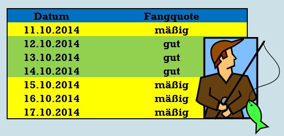Das Abflauen des Windes gibt den Anglern wieder mehr Chancen auf großen Fang: Ab dem 11. nimmt der Wind stark ab und es regnet zeitweise.
