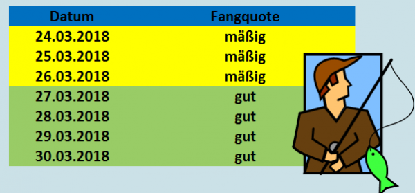 Die höhere Sonneneinstrahlung am Wochenende verpasst den guten Fangbedingungen der letzten Tage einen kleinen Dämpfer. Zur neuen Woche steigen die Erfolgschancen bei wechselhafterem Wetter dann wieder, die Vollmondphase am kommenden Freitag tut ihr übriges.