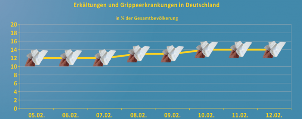Das typische Karnevals-Kränkeln greift in dieser Woche wieder um sich: Bei frischen Temperaturen und dem ein oder anderen zwischenmenschlichen Kontakt steigt die Zahl der Schnupfnasen in den nächsten Tagen auf bis zu 14% - und auch die echte Grippe zeigt sich wenig zurückhaltend und geht verstärkt um.