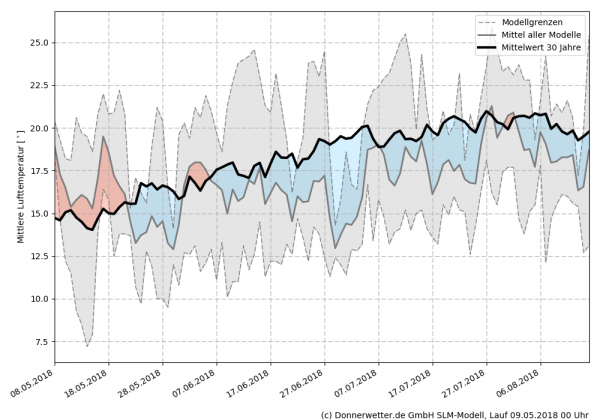 Unsere aktuellen Langfristprognosen für Lufttemperatur, Sonnenscheindauer und Niederschlagshöhe.
