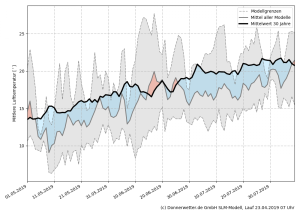 Die kommenden Wochen verlaufen laut aktueller Modellrechnungen im Norden zu kühl und zu trocken. Die Anzahl der zu erwartenden Sonnenstunden liegt bis Ende kommenden Monats mal über, mal unter dem langjährigen Mittel.