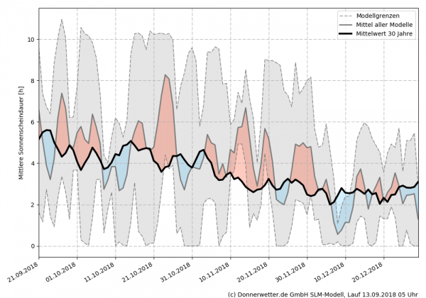 Unsere aktuellen Langfristprognosen für Lufttemperatur, Sonnenscheindauer und Niederschlagshöhe.