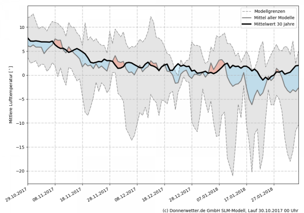 Wie unsere Modelle den Wetterverlauf für den Ostteil des Landes bis Ende Januar aktuell berechnen, sehen Sie in den drei Grafiken.