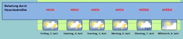 Mit teils erheblichen Hausstaubkonzentrationen und einem somit hohen Allergipotenzial müssen wir uns noch bis einschließlich Dienstag kommender Woche arrangieren.