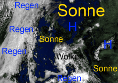 Meist wolkenloser Himmel und strahlender Sonnenschein
