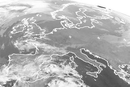 Hochdruckeinfluss bestimmt das Wetter in weiten Teilen Europas. Tiefausläufer mit ihren Wolken werden über Nordskandinavien nach Russland gelenkt. Ein Tief sorgt für Schauer und Gewitter auf der Iberischen Halbinsel und auch in Teilen Frankreichs. Über Deutschland ist der Himmel dagegen weitgehend wolkenfrei. (Bildquelle: NERC Satellite Receiving Station, Dundee University, Scotland, http://www.sat.dundee.ac.uk/)