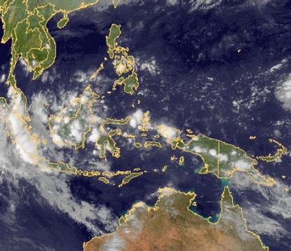 Auf dem Satellitenbild sind über den Inseln Indonesiens kräftige Schauer- und Gewitterwolken der innertropischen Konvergenzzone erkennbar.