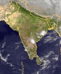 Über Indien liegt derzeit meist eine sehr trockene Luftmasse, die kaum Wolken zulässt. Vereinzelt sind jedoch über dem Süden und nahe der Ostküste schon isolierte Gewitterzellen zu entdecken.