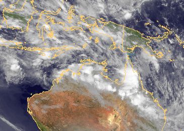 Über dem Norden von Australien haben sich kräftige Schauer und Gewitter entwickelt. Diese entstehen jahreszeitlich bedingt in Zusammenhang mit der innertropischen Konvergenzzone.