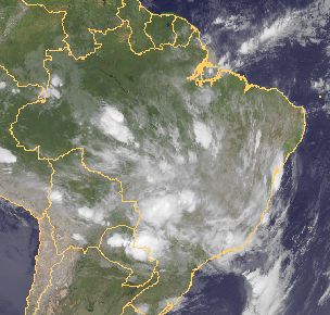 Über Brasilien haben sich kräftige Schauer und Gewitter entwickelt. Diese entstehen jahreszeitlich bedingt in Zusammenhang mit der innertropischen Konvergenzzone.