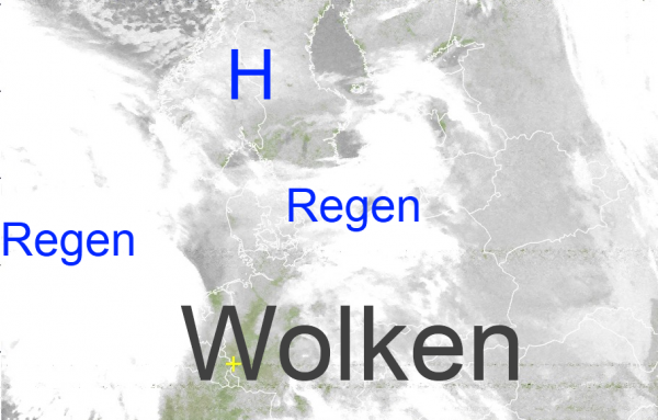 Trotz eines kleinen Hochs über Skandinavien dominiert nahezu über dem gesamten mittel- und osteuropäischen Kontinent kompakte Bewölkung. Aus dem dichten Wolkengrau fällt zeit- und gebietsweise Regen oder Sprühregen.