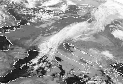 Das Sturmtief 'Gero' über Nordskandinavien sorgt für eine Wetterumstellung in Mitteleuropa. Auf dem Sattelitenbild erstreckt sich seine Kaltfront von Westrussland bis zu den Alpen. Dahinter strömt feucht-kühle Meeresluft nach Deutschland und Polen. Sehr gut sind Schauer- und Gewitterwolken über Nord- und Ostsee sowie über Norddeutschland zu erkennen. In Süd- und Südosteuropa bleibt Hoch 'Fridolin' weiterhin wetterbestimmend: über dem Balkan ist der Himmel meist wolkenlos, über Italien und dem Mittelmeer hat sich Hochnebel gebildet.