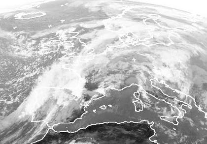 Bei Schottland liegt das Sturmtief 'Tina' Seine Kaltfrontbewölkung liegt über Westeuropa, davor liegt ein ausgedehnter Warmsektor mit milder Luft, aber ebenfalls vielen Wolken. Die Kaltfront überquert Deutschland in der Nacht und morgen, dann folgen von Westen mehr Auflockerungen. (Bildquelle: NERC Satellite Receiving Station, Dundee University, Scotland, http://www.sat.dundee.ac.uk/)