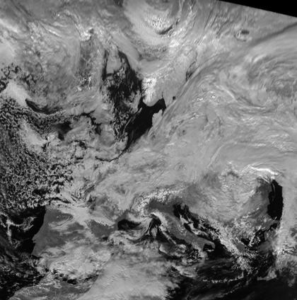 Das Tief 'Queen' mit Zentrum über Südosteuropa hat in der feucht-kalten Luft über Ost- und Mitteleuropa für eine verbreitet dichte Wolkendecke gesorgt. Auffällig ist die scharfe Wolkenkante, die von der südlichen Nordsee über Jütland und Mittelschweden bis zur nördlichen Ostsee reicht. Nordwestlich von ihr ist es zum Teil wolkenlos, hier überwiegt der Einfluss von Hoch 'Frommhold' mit Zentrum über den Britischen Inseln.