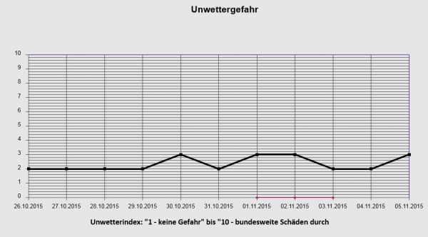 Die Gefahr durch Unwetter bleibt in der nächsten Wetterwoche weitgehend gering. Bei meist leichtem Hochdruckwetter und einer überwiegend leichten Windströmung in nur regional, und dabei vorwiegend im Süden und Osten Deutschlands Bodenfrost und Rauhreif möglich, sonst bleibt es meist frostfrei. In den küstennahen Gebieten weht vorübergehend ein teils starker, selten auch stürmischer Wind.