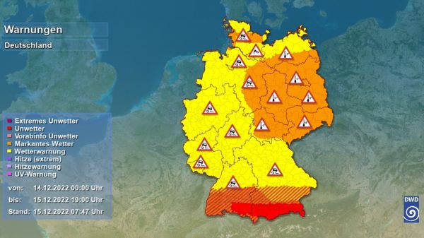 Im Süden fällt immer noch Eisregen. Am Freitag neuer Schnee an den Alpen. Achtung Schnee auch an der Küste. Mehr hier.